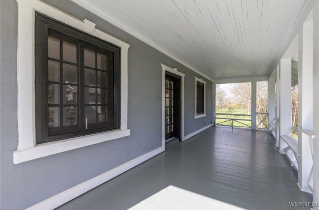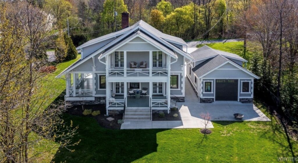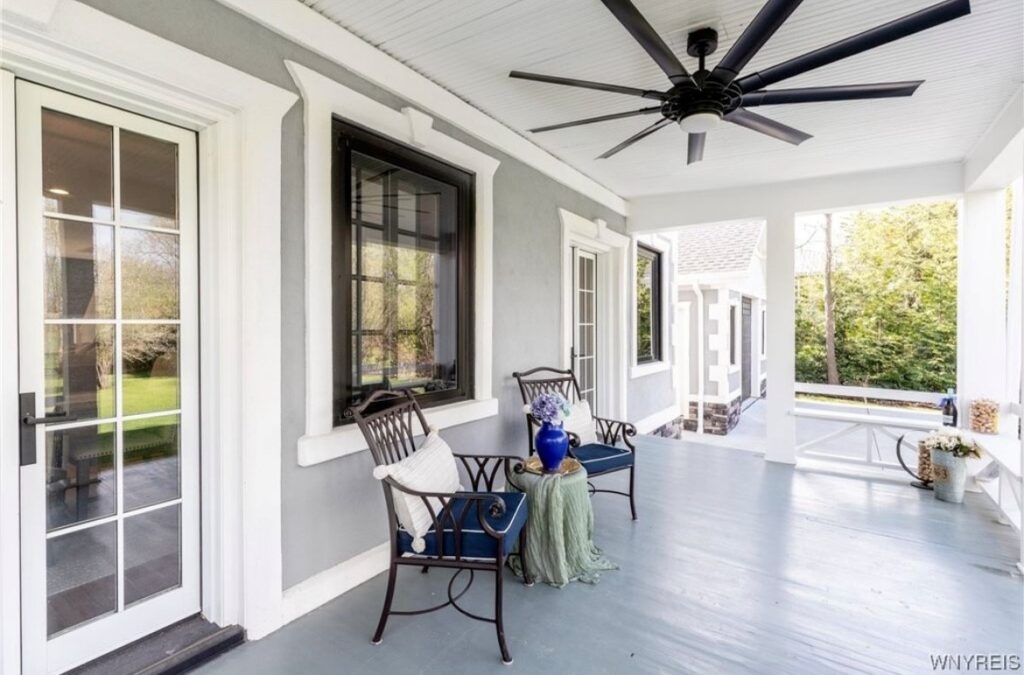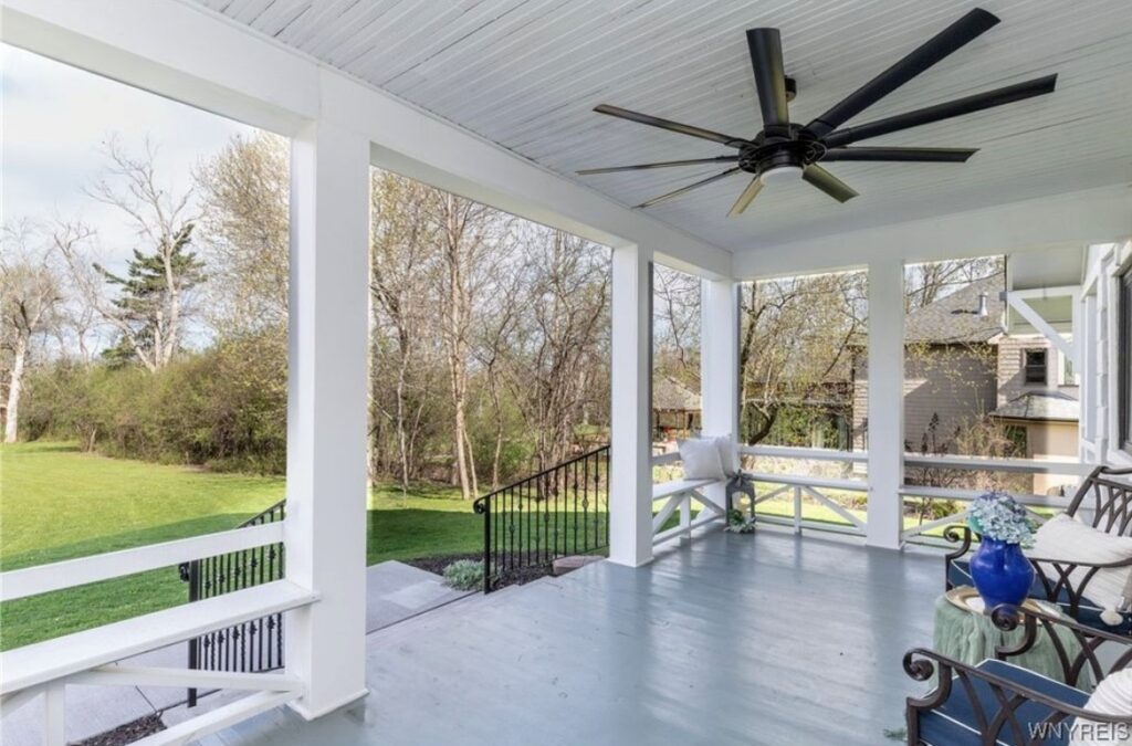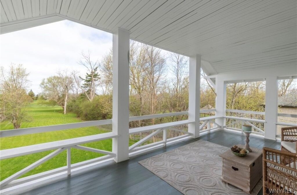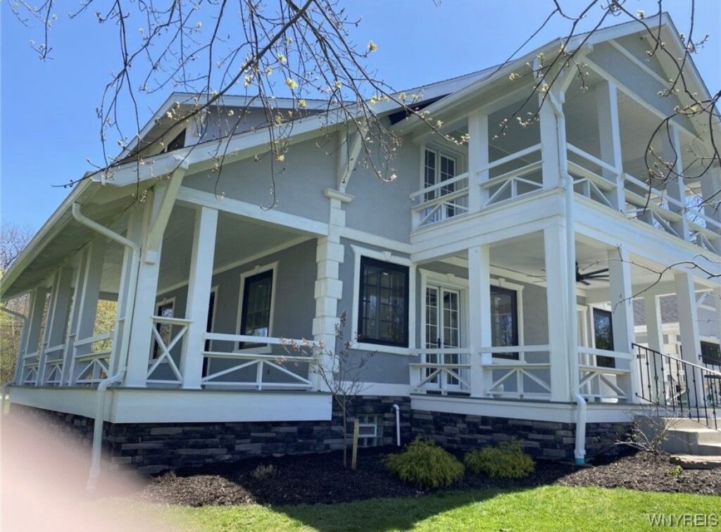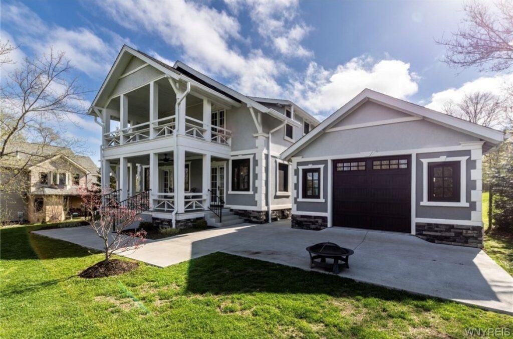 This Craftsman-style four-bedroom home is brimming with character and perfectly situated with sweeping views of the 2nd hole at Wanakah Country Club. Thoughtfully updated throughout, it features a fully remodeled kitchen with a spacious island and breakfast bar, complemented by tile flooring that extends from the welcoming front entry into the kitchen and half bath, where you’ll also find convenient first-floor laundry. The oversized living room, with warm wood floors, opens to a covered side porch ideal for relaxing, while the formal dining room provides access to a private rear porch overlooking the golf course. Upstairs, two rear bedrooms enjoy direct access to an upper covered porch and offer abundant closet space. Modern updates include new doors, windows, light fixtures, and stucco, while the extended tandem garage with a rear overhead door leads to a concrete patio, creating a perfect blend of indoor comfort and outdoor enjoyment.
