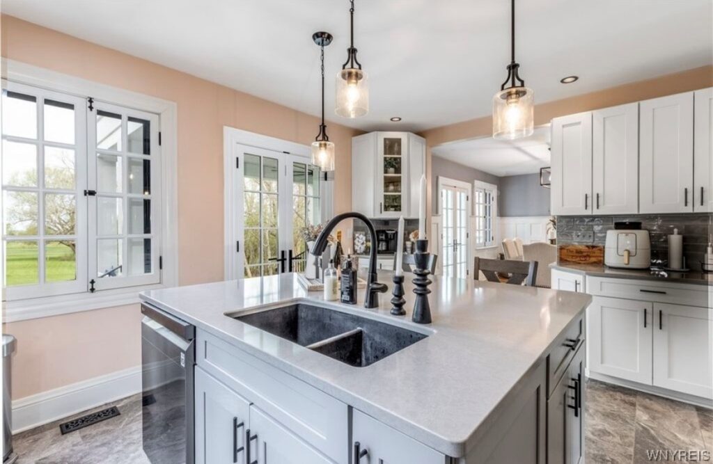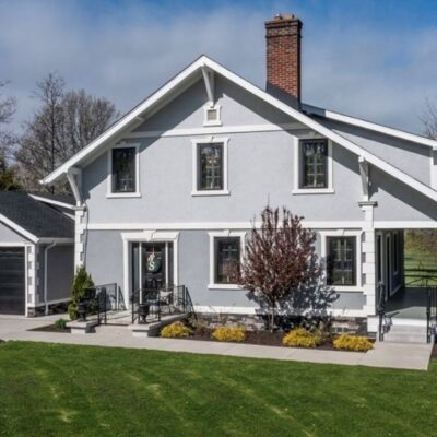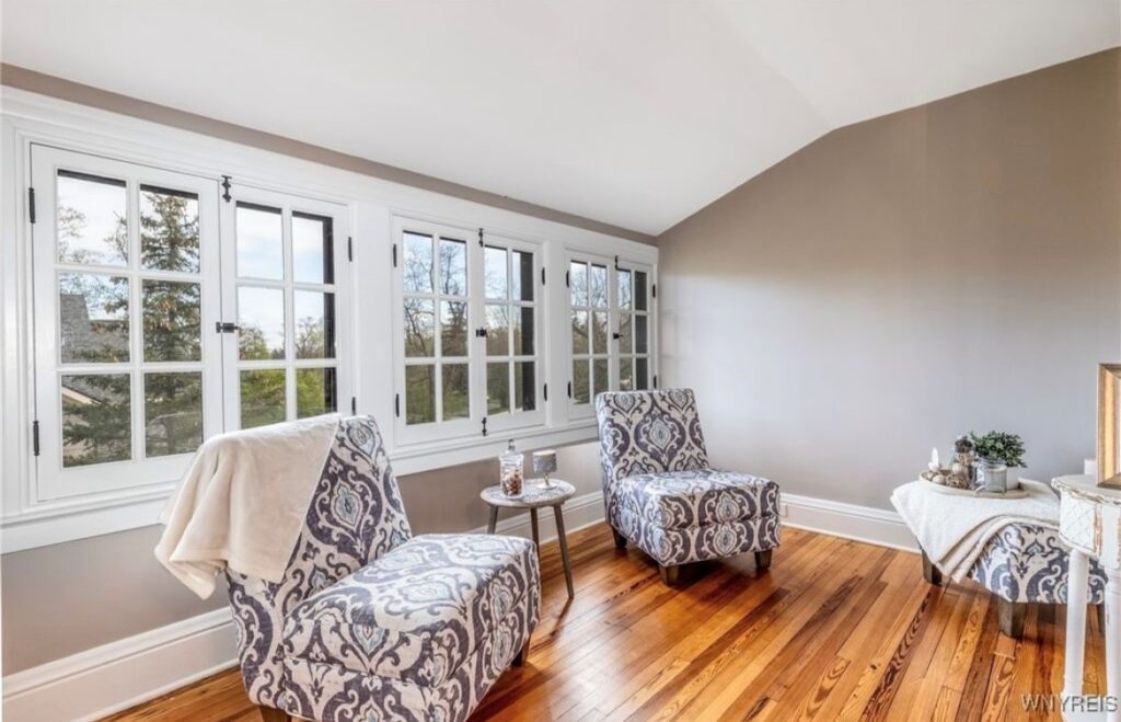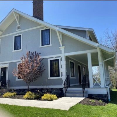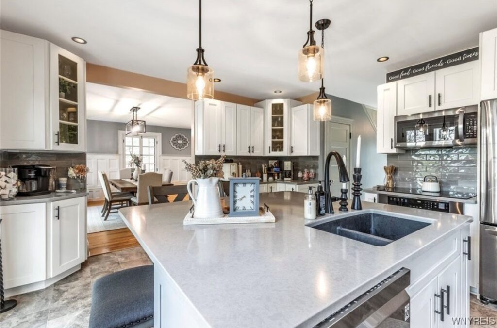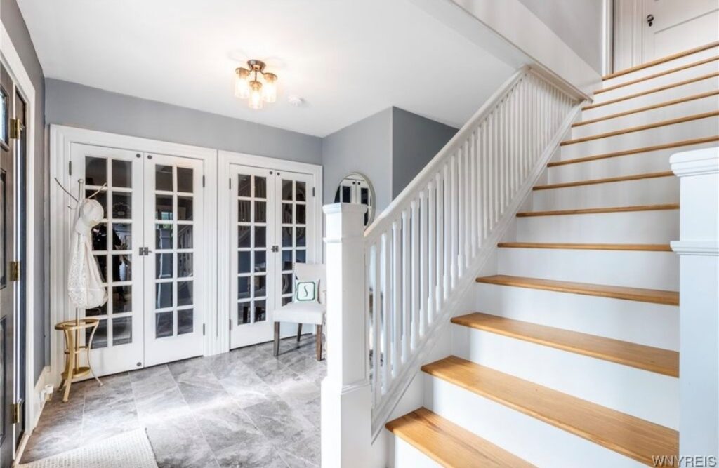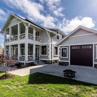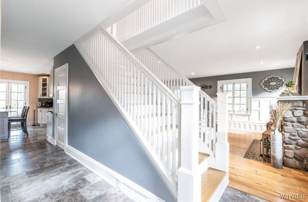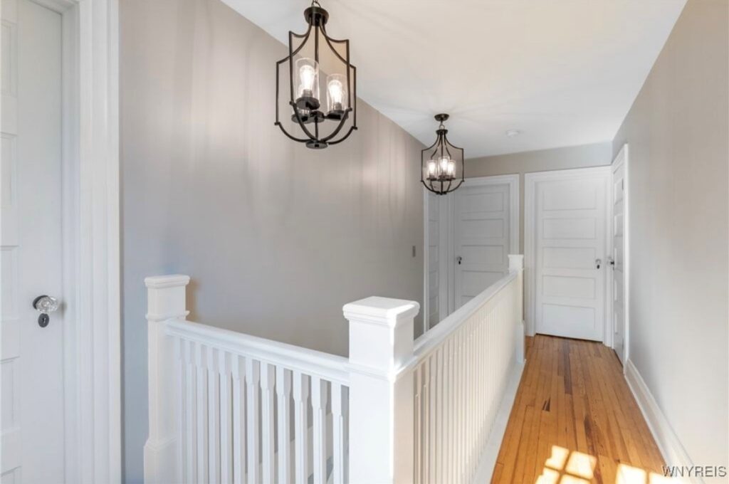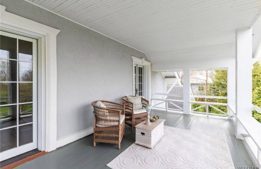This Craftsman-style four-bedroom home is brimming with character and perfectly situated with sweeping views of the 2nd hole at Wanakah Country Club. Thoughtfully updated throughout, it features a fully remodeled kitchen with a spacious island and breakfast bar, complemented by tile flooring that extends from the welcoming front entry into the kitchen and half bath, where you’ll also find convenient first-floor laundry. The oversized living room, with warm wood floors, opens to a covered side porch ideal for relaxing, while the formal dining room provides access to a private rear porch overlooking the golf course. Upstairs, two rear bedrooms enjoy direct access to an upper covered porch and offer abundant closet space. Modern updates include new doors, windows, light fixtures, and stucco, while the extended tandem garage with a rear overhead door leads to a concrete patio, creating a perfect blend of indoor comfort and outdoor enjoyment.